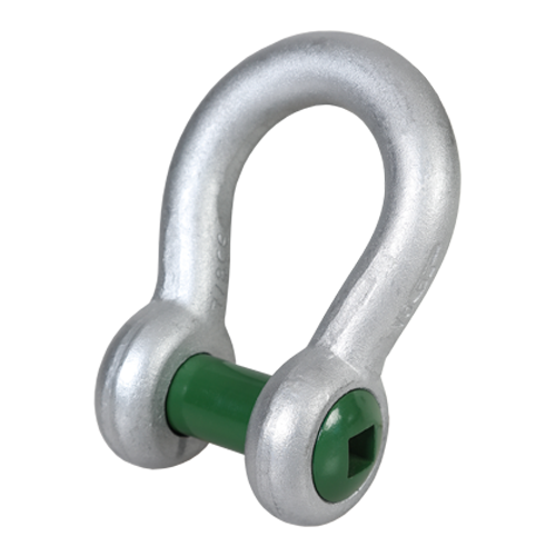 The Green Pin® Fishing Bow Shackle FP is a bow shackle with a square sunken hole screw pin (flush pin). The Green Pin® Fishing Bow Shackle FP contains no protruding parts so it does not damage or get caught in fishing nets. Another important feature is that the chamber in the shackle eye hides the screw thread and reduces wear of rope. Galvanization of the bow shackle ensures its long-term durability. The Green Pin® Fishing Bow Shackle FP is suitable for both one-leg and multi-leg systems and can be assembled with the help of the Green Pin® Sunken Hole Key. The shackle is available in a range with a working load limit from 2 up to 17 ton.
