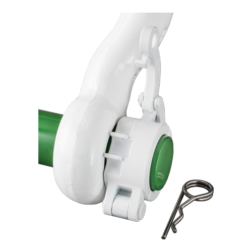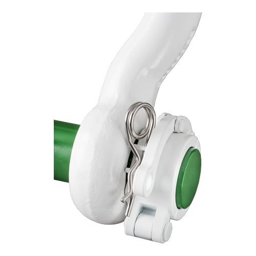 The Green Pin® Locking Clamp ROV Shackle is perfect for release operations with a remotely operated vehicle (ROV). The grade 8 shackle has been specially developed for sub-sea applications and is easy to handle for the ROV pilot. The Green Pin® Locking Clamp ROV Shackle has a powerful locking system which ensures that the load will not be released before you want it to. The white coating of the Green Pin® Locking Clamp ROV Shackle optimizes visibility under water and ensures its long-term durability. The ROV shackle is available in a range with a working load limit from 6.5 up to 250 ton.
