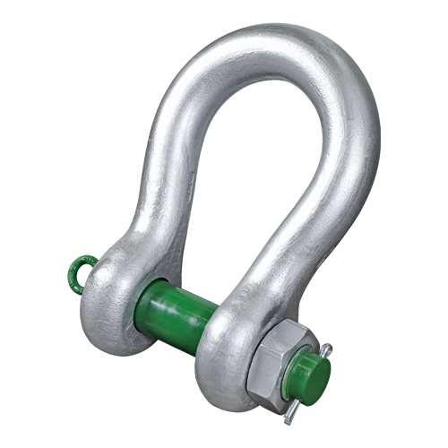 The Green Pin® Heavy Duty Bow Shackle BN is a high load capacity bow shackle with a safety bolt. The Green Pin® Heavy Duty Bow Shackle BN is a good choice for heavy lifting projects and is suitable for both one-leg en multi-leg systems. When rotation of the pin is a risk, this shackle's safety bolt prevents accidental unscrewing. Another important feature of the product is that the Green Pin® Heavy Duty Bow Shackle BN conforms to a wide range of certifications. For example, Heavy Duty Shackles of 150T and higher include a Lloyd's proofload test certificate. The Green Pin® Heavy Duty Bow Shackle BN is available in a range with a working load limit from 120 up to 1500 ton.